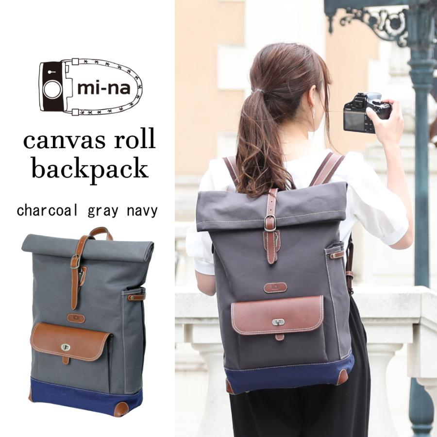 カメラバッグ 一眼レフ Camera Bag おしゃれ かわいい ロール帆布リュック チャコールグレーネイビー 001 ミーナ 通販 Yahoo ショッピング